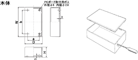 | 品番 | 外部寸法 | 内部寸法 | ボス・位置 | |||