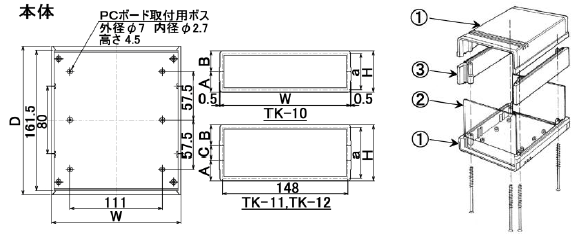 | ①本体 | ABS(黒・グレー) |